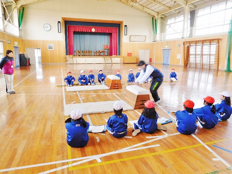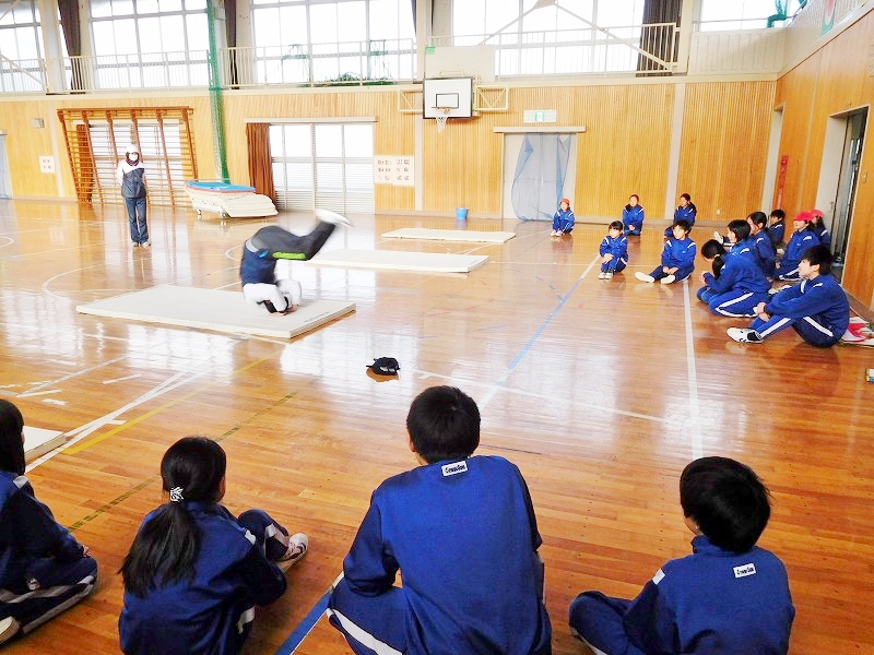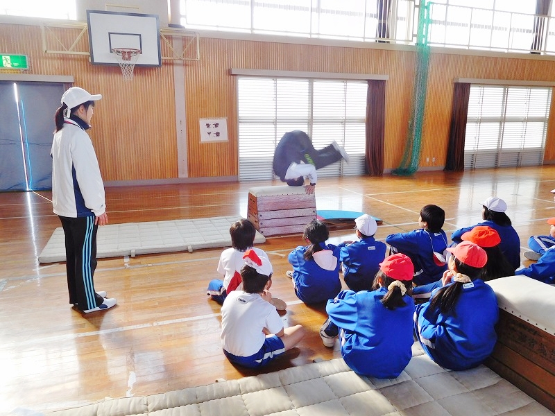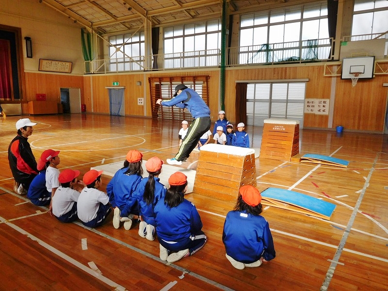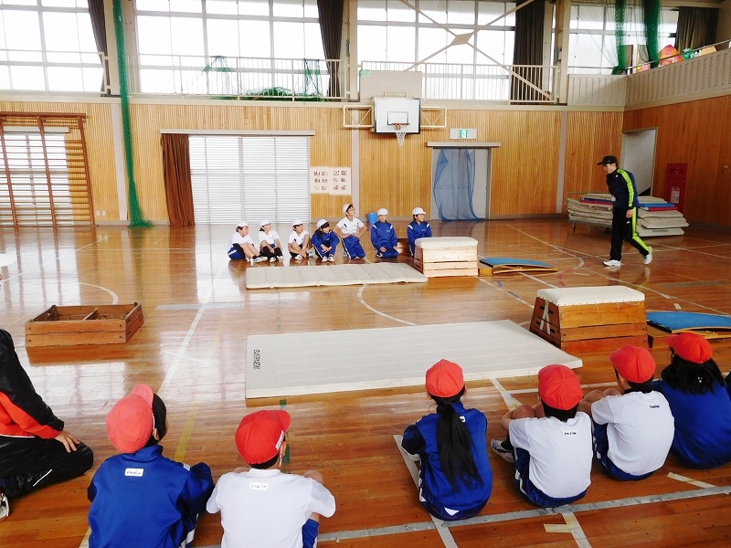 昨年と今年で,体育専門アドバイザーの先生が2名来校され,約2週間の期間に体育の楽しさや技のポイントなどを模範演技やアドバイスにより学びました。体育の時間以外にも,給食の時間,休み時間,クラブ活動の時間など日常生活の中での「かかわり愛」を持っていただきました。