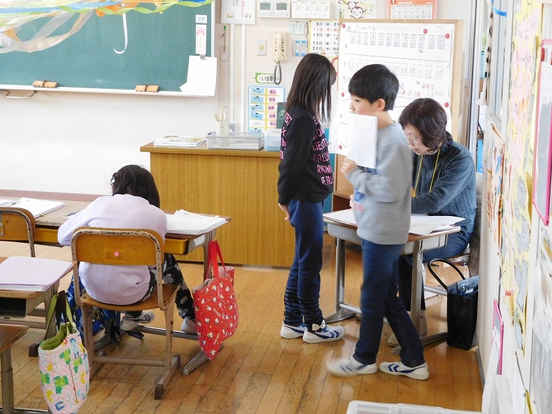 和田小学校では,放課後に「問題解決力の基礎固め」として,国語と算数の問題解決を行っています。2016年,最初の「ステップアップ」です。今回も,2名の学習支援ボランティアの塩田様,武田様が来校されました。放課後,担任や教員と一緒に1年生,2年生,3年生,4年生への学習支援を進めました。子どもたちは,ドリルの問題に取り組んだり,担任と相談しながら国語科や算数科の問題シートを選択したりして熱心に取り組みました。毎回,学習ボランティアの皆様には,ご丁寧に解答を確認され,「〇」を付けていただきました。ありがとうございました。