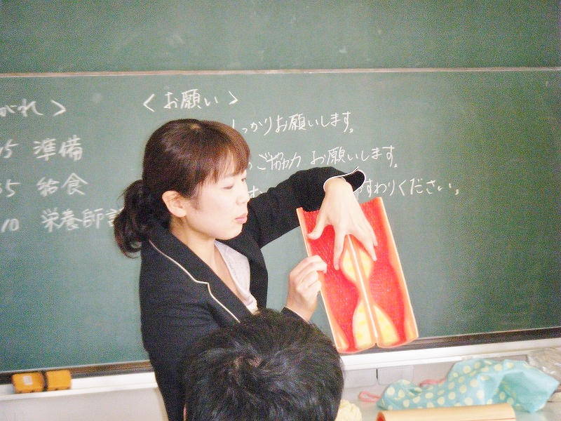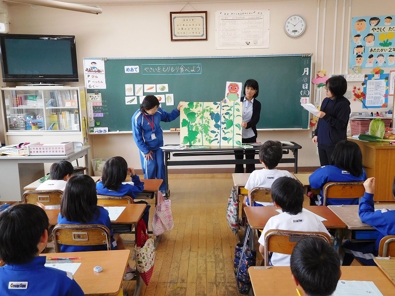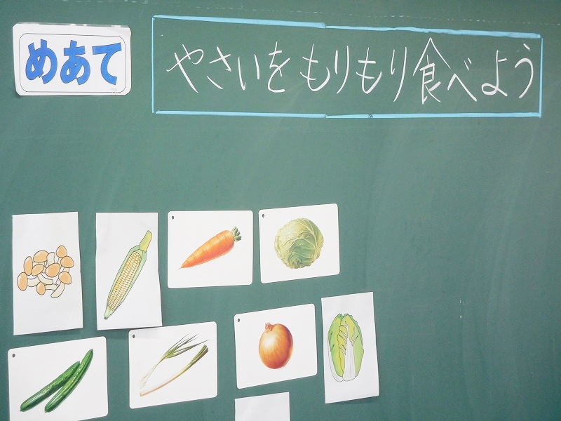 そこで,学校における「食育学習」を通して,これらの行動ができる子どもたちを目指しています。今回が,その一つです。整腸作用と野菜の関係,栄養とかぜ予防との関係など,学校における「食育と健康」は,今後も続けて参ります。学校とご家族の皆様方のご理解とご協力により,「野菜食の嫌いな子ども」を少しでも減らすことができるのではないでしょうか?