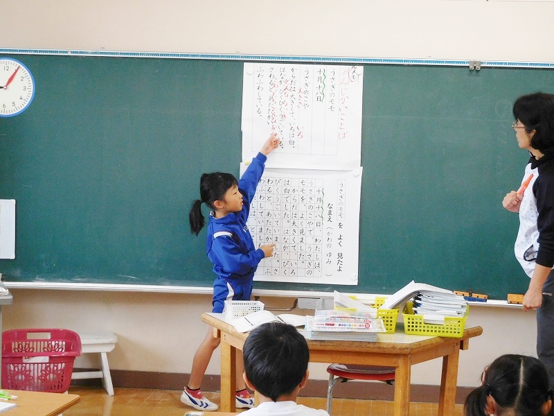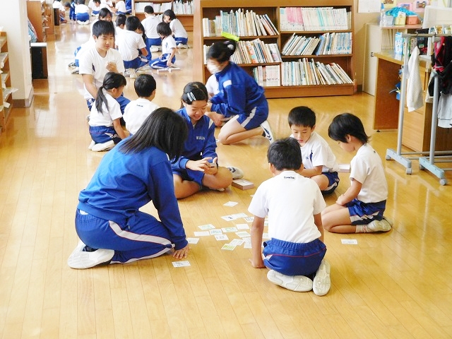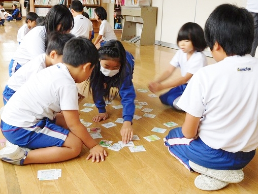 ※一人一人,思いを表現しています。1年生から6年生まで,異学年チームにより「わんだかるた」とりをしています。