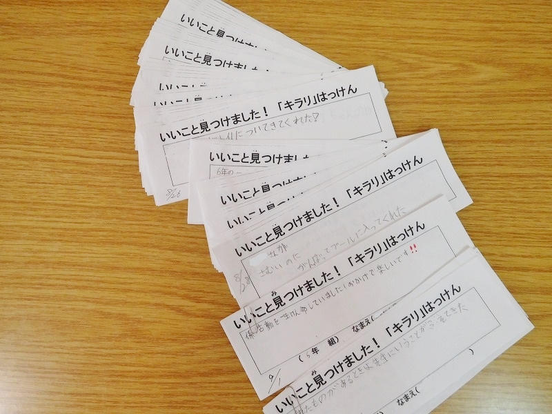 11月2日(月),和田小学校で2学期からスタートしました「いいこと見つけました!キラリ発見」ボックスの設置が,2カ月経過しました。なんと,99枚もの「キラリ発見」カードが投函されていました。