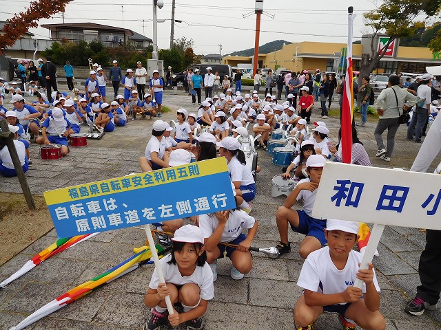 和田小学校は,4年生・5年生・6年生の子どもたちで編成した鼓笛隊です。小規模校の「よさ」を十分に発揮した鼓笛隊パレードでした。素晴らしい子どもたちでした。今回の鼓笛隊パレードを実施するに当たり,郡山北警察署様,本宮市様,交通安全関係者の皆様,本宮市教育委員会様,PTAの皆様には大変お世話になりました。子どもたちの鼓笛パレードにより,本宮市内から交通死亡事故「ゼロ」となれば幸いです。本宮市長様,郡山北警察署長様のご挨拶のとおり,子どもたちは「いのち」を守ることの大切さや行動を学ぶことができました。