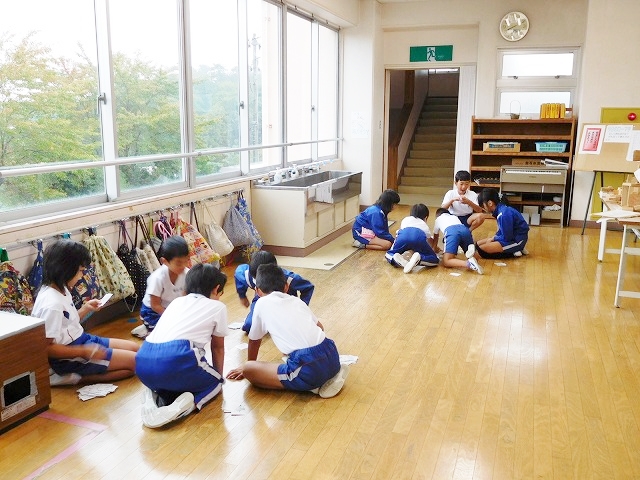 9月25日(金),朝の集会活動にて,わだっ子1年生から6年生が,縦割り班により「わんだかるた」遊びを行いました。昨年度,完成した和田小学校の「わんだかるた」も,学校生活の中に定着し,日常的に「かるた取り」などで遊んでいます。