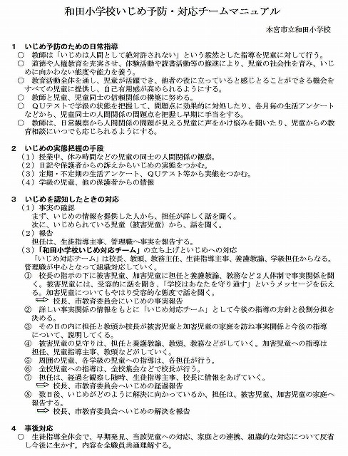 <和田小学校のいじめ防止基本方針と対応チームマニュアル>