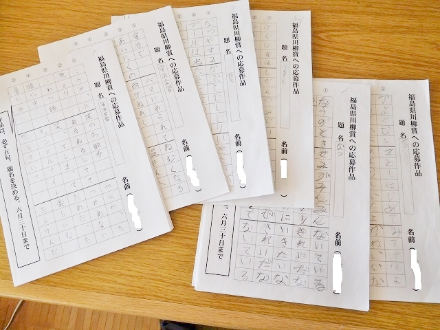 その後,機会を得て1学期中に,1年生から6年生まで,それぞれ学校生活や校外体験活動を題材として「川柳」を詠みました。各自が詠んだ「川柳」を,福島県川柳賞へ応募することにしました。(7月21日に応募)今回は,1年生から6年生までの全員が作品を仕上げましたので,全員の作品を応募しました。(主催者:福島県川柳連盟・福島民報社・福島県)※福島県川柳賞は,福島県内において古くから行われており,もっとも権威のある川柳賞です。
