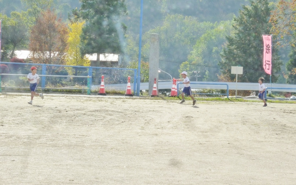 ・「朝,持久走記録会の練習です。」1年生