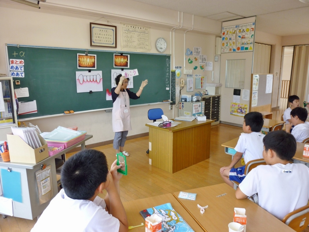 歯の大切さは、大人も子どももわかっていますが、毎日の歯みがきは「歯への思いやり」や「体の健康」を考えながら、丁寧にみがいているでしょうか? 6月11日(水)に、歯科衛生士の伊藤様からご指導を頂きました。今回は2年生、4年生、6年生です。次のようなめあてで学習しました。次回は、1年生、3年生、5年生です。