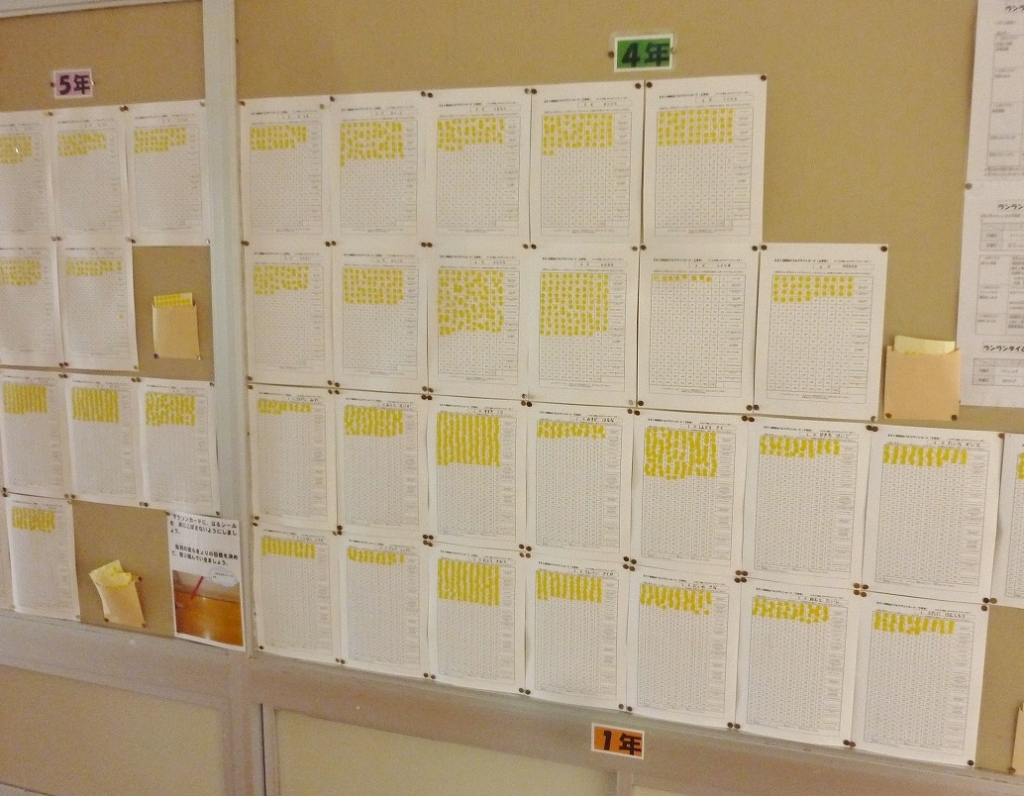 和田小が実施している「ランランタイム」におけるランニングも各自の目標のもと、体力向上を目指しています。(記録カードにはシールがたくさん!)