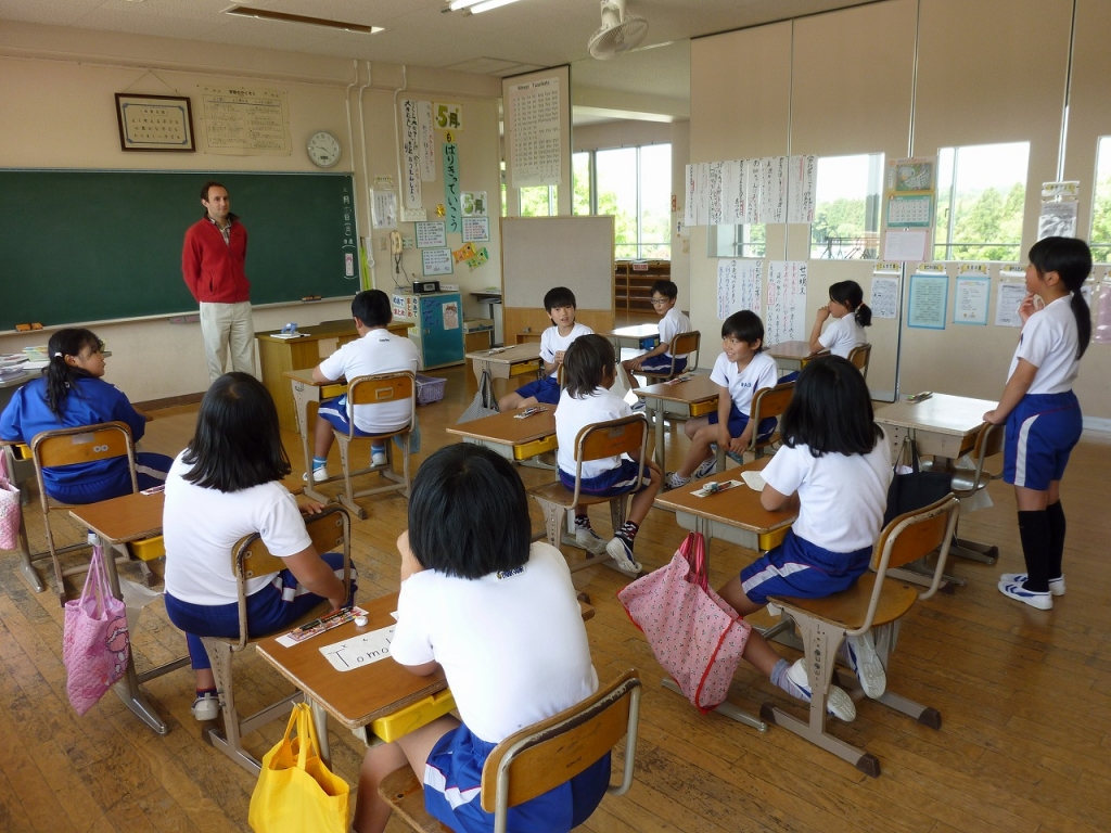 5月12日(月)に、ALTの先生とともに「英語活動」を楽しみました。自己紹介を英語で話したり、身近なものを英語で表現したりするなど楽しい時間を過ごしました。