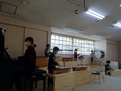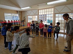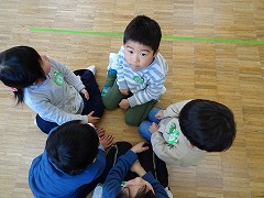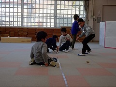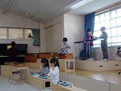 合奏を聞きながら、投げコマ回しの練習をしていたT君が、「飽きないんだね。」「うん、凄いね!」「じゃ~、僕もまざってこようかな?」と、参加していました。メンバーが入れ替わりつつも、続く合奏遊びでした。