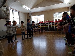 和田幼稚園に入園した21名のりす組さん、年長組に進級した11名のぞう組さん。