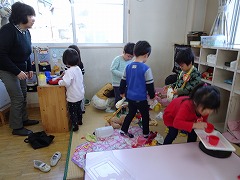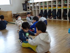 今日教えていただいた「からすかずのこ」は、とても楽しかったらしく、わらべうた教室が終わった後も、子どもたちで続きを楽しんでいました。