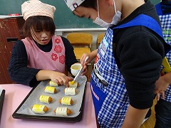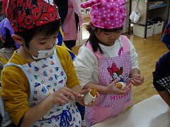 それから、クリスマス会の準備。ウインナーパイを作りました。