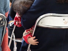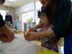 演奏する由紀先生の指の動きをじっと見ながら聴き入る子どもたちでした。素敵なフルートの音色は、1歳の子どもにも心地よいのでしょう。小さな手でリズムを取りながら、哺乳瓶をくわえていました。