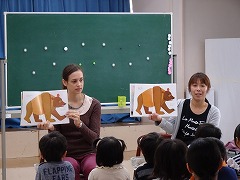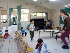 ジェナ先生と本宮高校2年生2名と、英語で「変形色鬼」をして楽しみました。