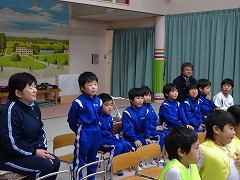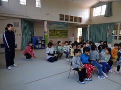2017年11月28日 11時40分発表の予行練習に1年生が来てくれ、リズム劇と言語劇を見てくれました。