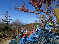杜のターザンの遊具では、♫あるこ~あるこ~、私は、ビビり~♫と、『さんぽ』の替え歌で自分を表現していました。ビビりさんも、「できない!無理ムリ!」と言っていたお友だちも、先生に応援してもらって、できるようになっていました。