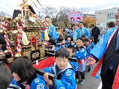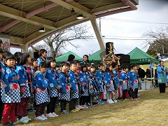 ちびっこ神輿「開会式」 鈴をもって「わっしょい!わっしょい!」