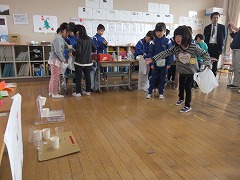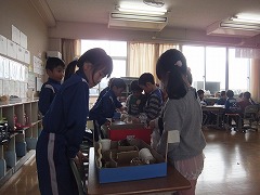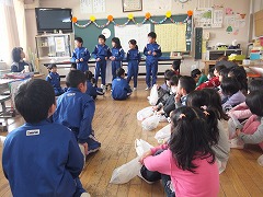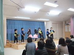 12/14(月) 1年生に招待され、年長児が小学校へ遊びに行ってきました。                                                                   小学校へ向かう足取りは軽やかで、うきうきして笑いが止まりません。