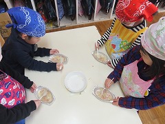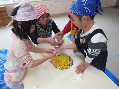 「ねぇせんせい、自分で作ったのって、おいしいよね。」と、グラタンを食べていました。                                                         食べながら、「これ食べたら、お母さん喜ぶだろうな。」