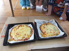 喜んで食べていました。「おいしかったね!」「また、ピザパーティする?」