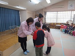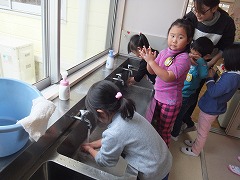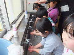 和田幼稚園のインフルエンザ予防対策として行っている、手洗いのようすを紹介します。