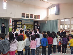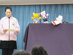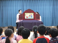 人形劇と紙芝居による交通安全のお話を、真剣に聞いていました。