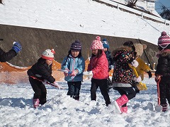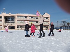雪合戦の相手は、先生にするのが一番面白いようでした。「まてぇ~!」