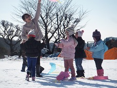 風が弱く、思うように揚がりませんでした。でも、広い校庭を走り回るのは、最高にいい気分!