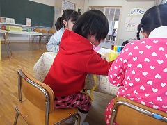 今日は1日入園でした。おうちの方が、入園の説明を聞いている時間、