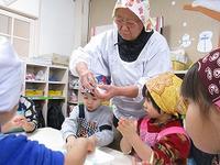 地域の方にお越しいただき、だんごさしの由来や団子の作り方を教えていただきました。