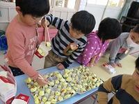年長さんはお団子を丸めて作り、年少さんは飾りを作りました。
