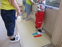 並ぶときも前の友達との間隔をあけて上手に並んでいます。