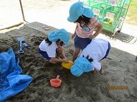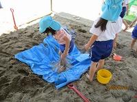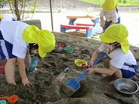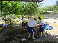 水を使って池や川を作りダイナミックに砂遊びを楽しんで