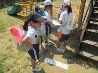 年長さんが7枚のカードを集めて宝探しに出発しました。