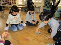 子どもたちは、こまや凧揚げ、すごろくなどのお正月遊びを楽しんでいます。