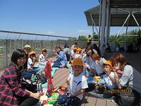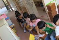 遠足のあとは、自分たちで作ったお弁当を持ち、積み木のバスに乗って遠足ごっこを楽しみました。