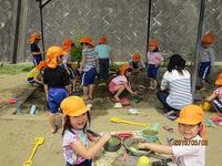 園庭の隅にダンゴムシがたくさん隠れている場所を発見しました。